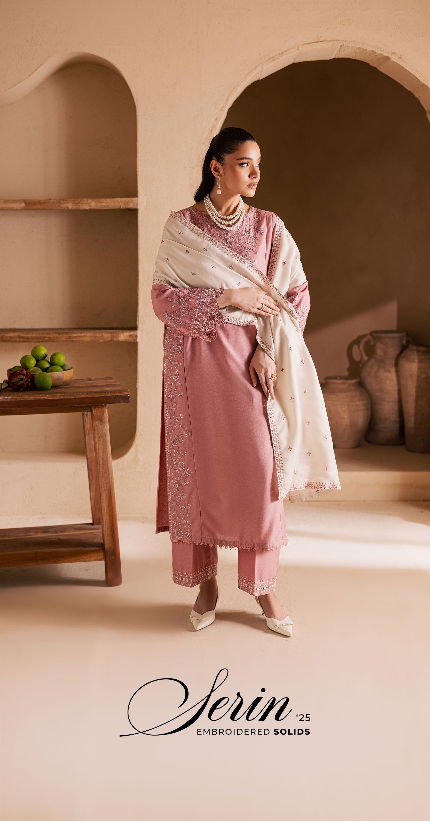 Pink Inizio 3Pc - Embroidered Khaddar Dress