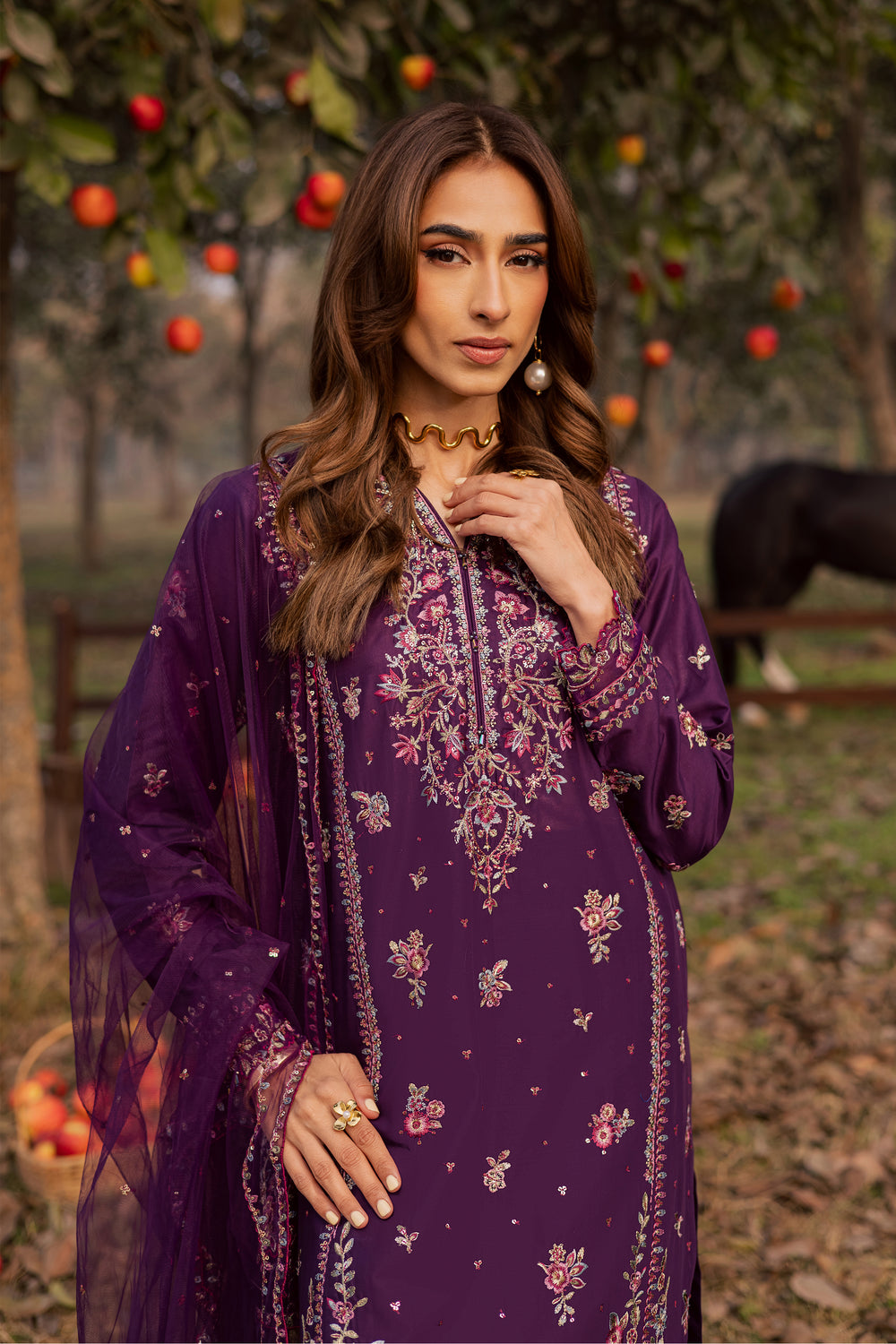 Purple Garden 3Pc - Festive Embroidered Lawn