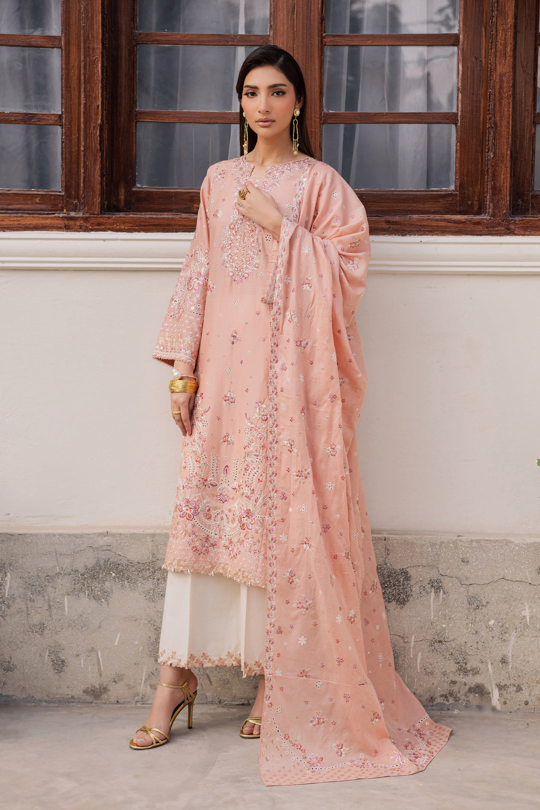 Peach Line 3Pc - Festive Embroidered Lawn