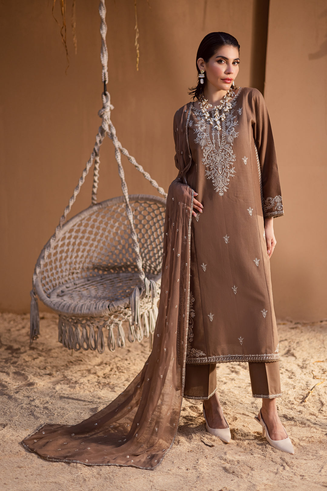 Terracotta 3Pc - Embroidered Khaddar Dress