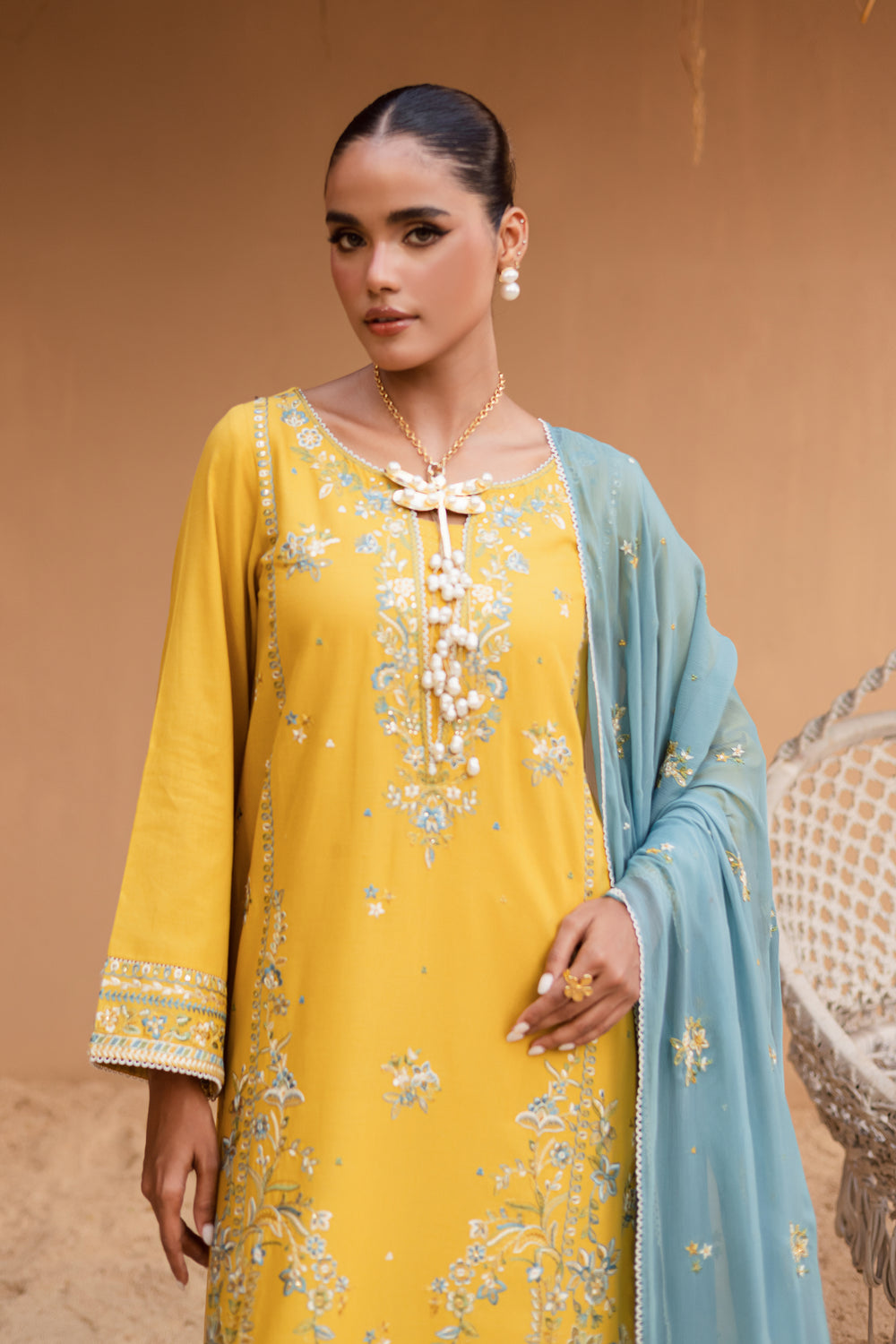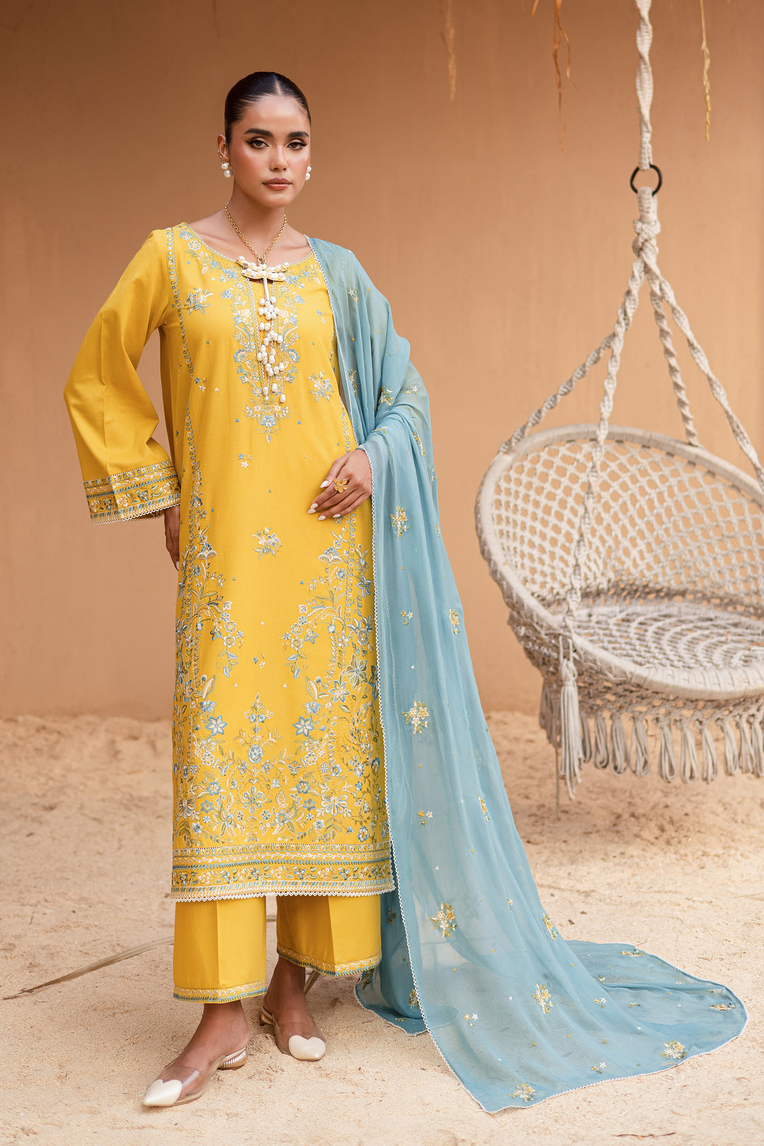 Yellow Castor 3Pc - Embroidered Khaddar Dress