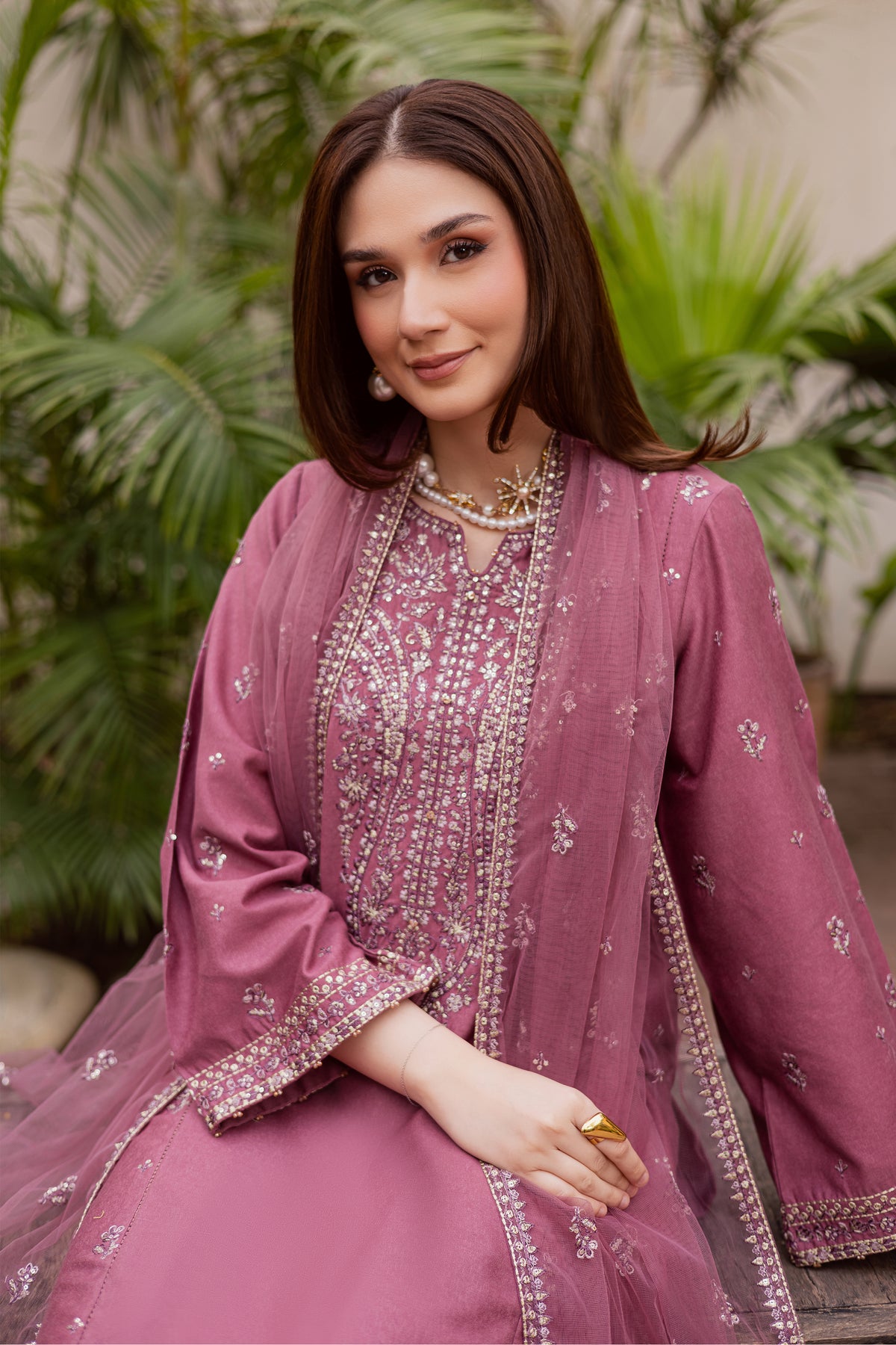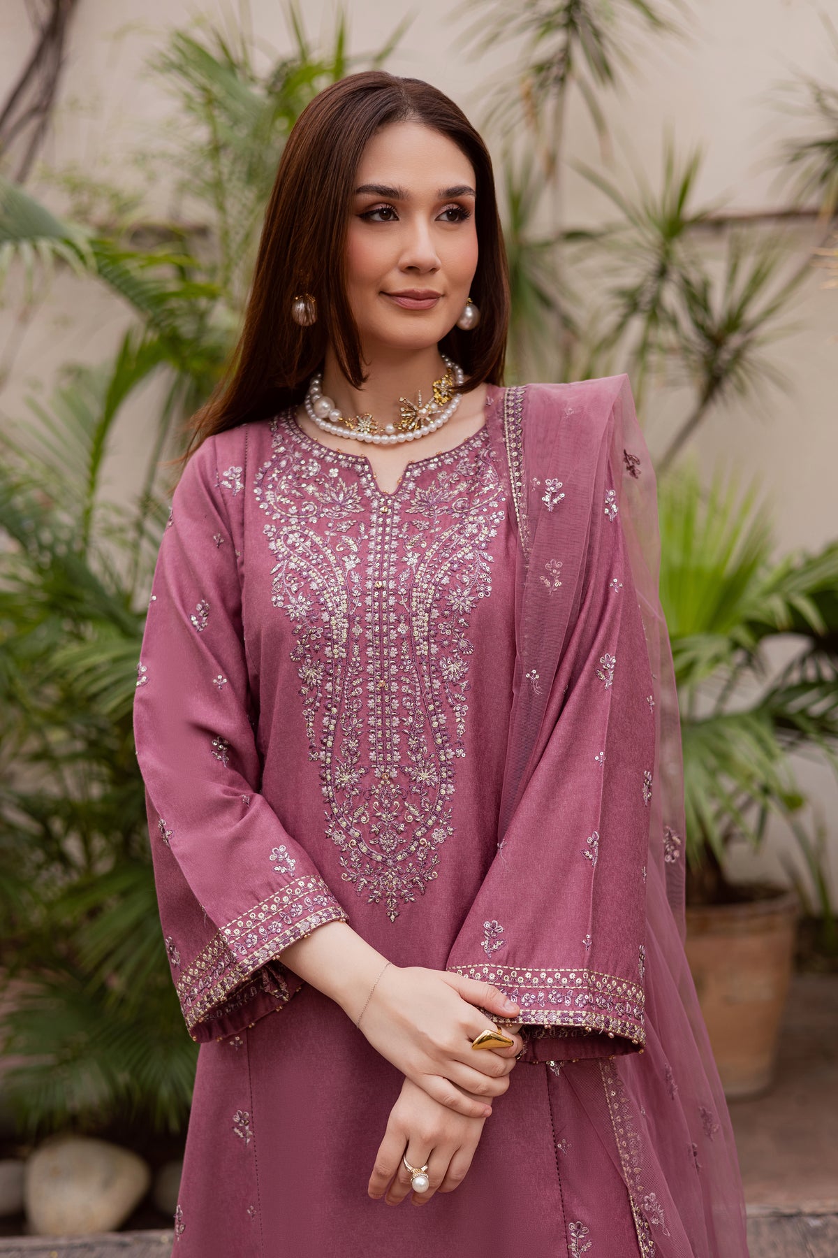 A crinkle dupatta completes the ensemble, adding softness and a graceful finishing touch.