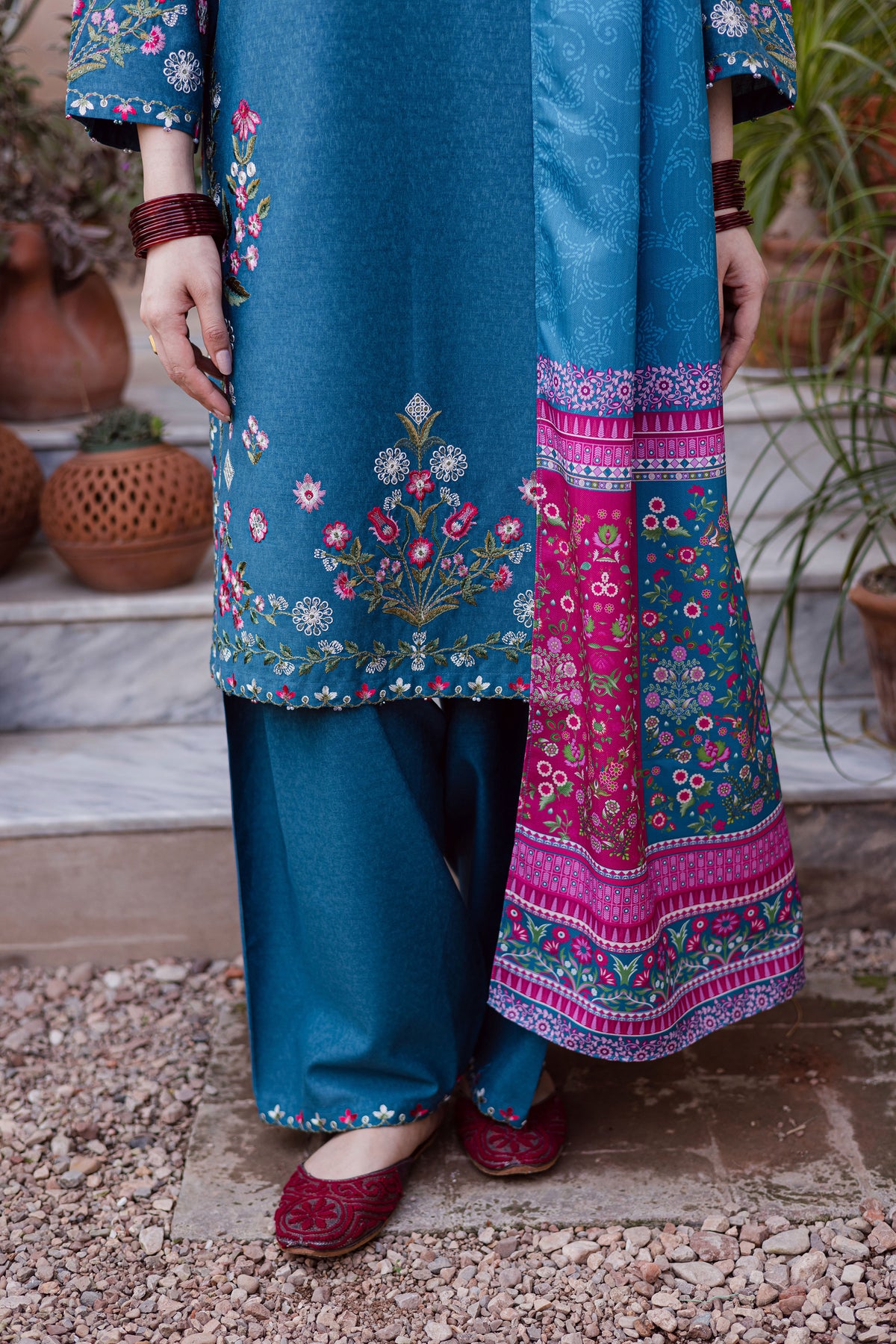Elika 3Pc - Embroidered Karandi Dress BATIK WINTER PRET 2025  BATIK   XS / Whale Blue / Karandi-S / Whale Blue / Karandi-M / Whale Blue / Karandi-L / Whale Blue / Karandi-XL / Whale Blue / Karandi
