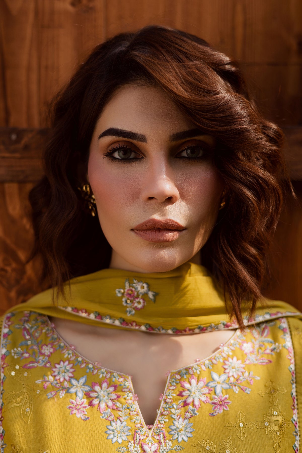 Paired with a classic khaddar shalwar adorned with embroidered borders, the look strikes a beautiful balance between traditional artistry and modern grace. The silhouette flows effortlessly, offering comfort without compromising sophistication.
